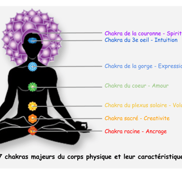 Terme sanskrit qui signifie roue ou disque. Le terme est aujourd'hui plus connu pour désigner des centres spirituels ou points de jonction majeurs des canaux d'énergie subtile (méridiens*). Il y a sept chakras principaux situés dans le corps physique et des milliers de chakras secondaires. Les chakras ont pour fonction la régulation de l'énergie entre les différentes parties du corps, et entre le corps, la terre et l'univers. Ils sont soumis aux aléas de santé holistique* de l'individu et sont caractéristiques de cette dernière.